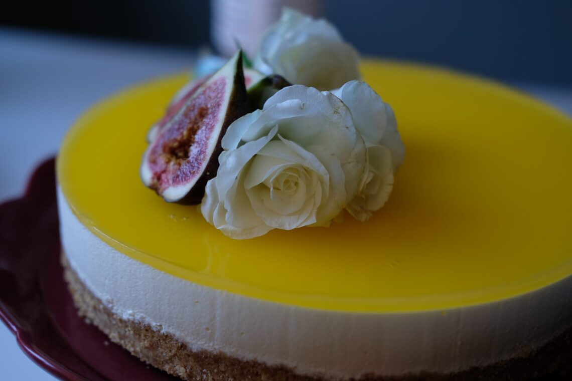 I de fleste ostekake oppskrifter som ikke skal stekes er det en til to pakker gelepulver som skal løses opp i vann. Det blir det litt kunstig smak av synes jeg, her bruker jeg gelatinplater oppløst i nypresset saft fra appelsiner og sitroner. Du kan selvsagt bruke gelepulver om du foretrekker det, men om du vil prøve min variant er jeg ganske sikker på at du vil fortsette å lage kaken på denne måten.