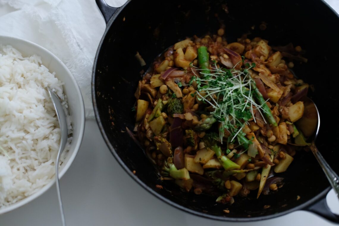 Slår et slag for kjøttfrie middager i dag. Denne gryta er laget på den tiden man bruker på å koke ris, kjapt, sunt, veldig godt og enkelt. Kan man få det enklere?