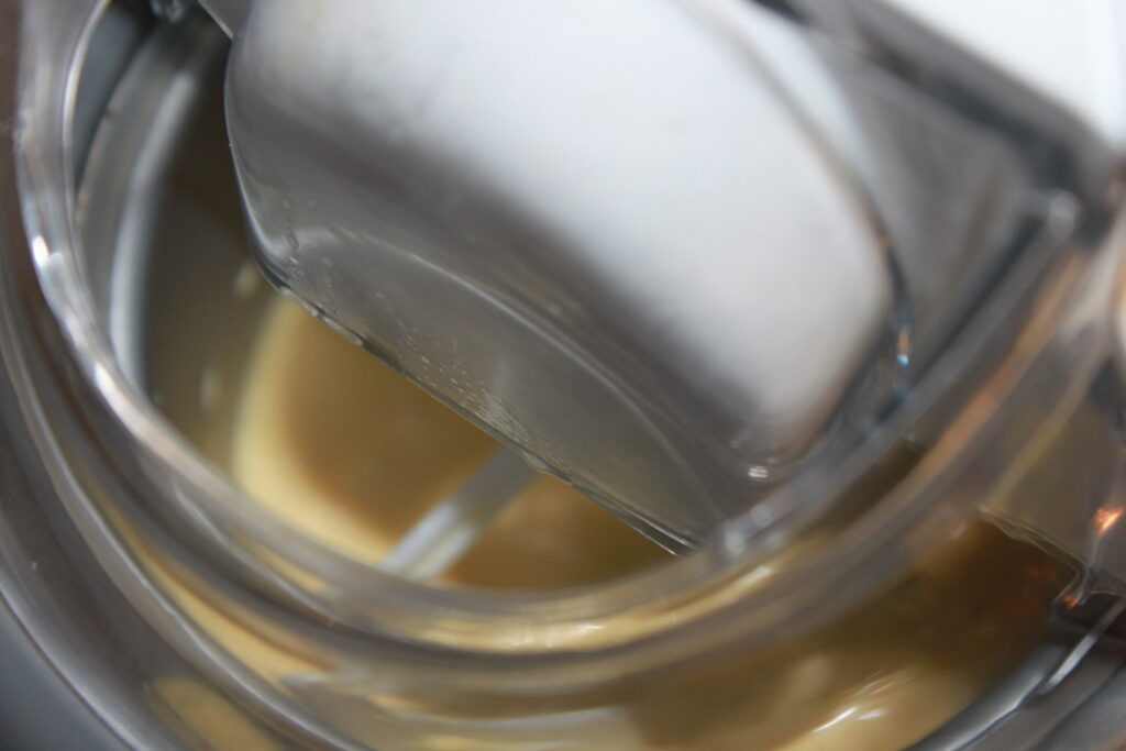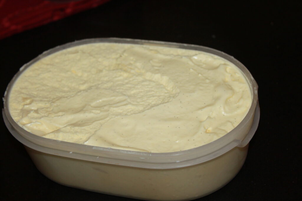 Når blandingen er kald has den i en iskremmaskin, kjør til den er ferdig.