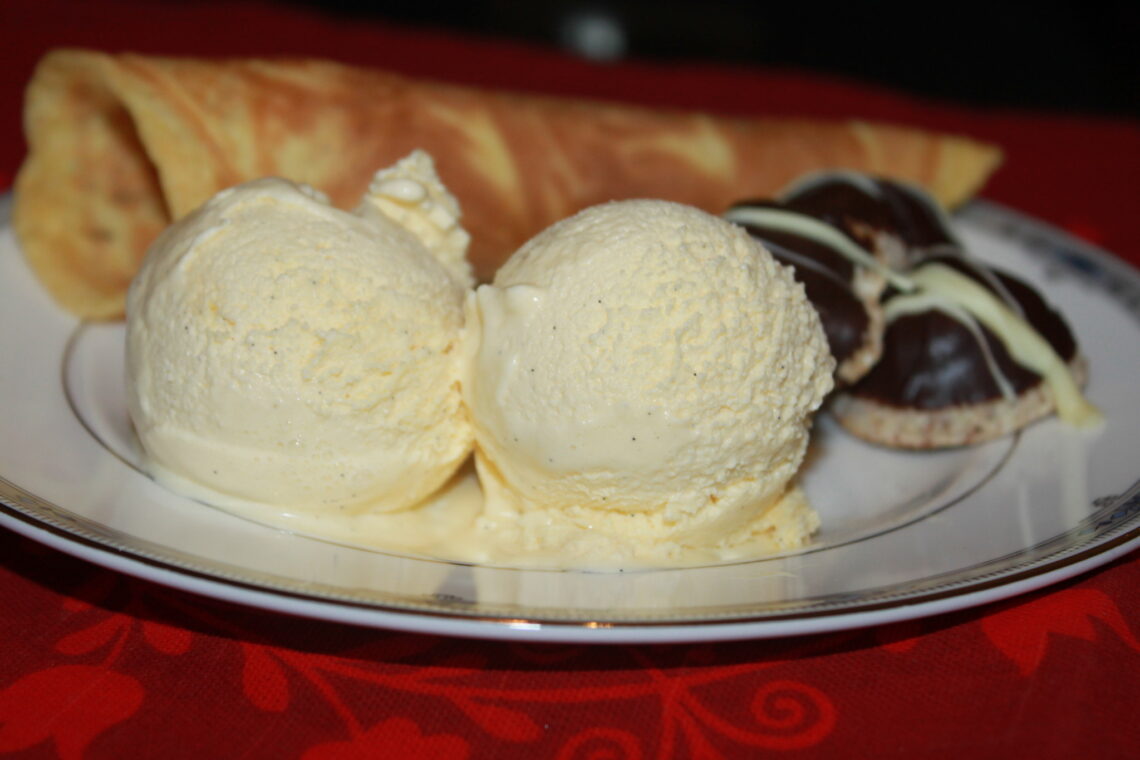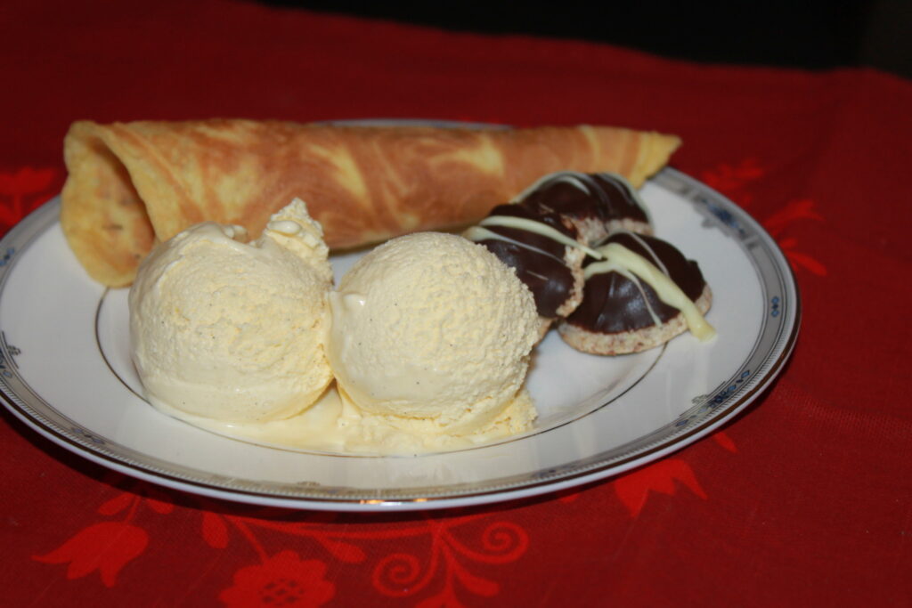 Jeg liker veldig godt å kombinere smaker, og prøve ut nye idèer. Da jeg bestemte meg for å lage is, ville jeg smakssette den med noe «julete», valget var enkelt, appelsin og kanel. Det var delte meninger om smaken her hjemme, men flertallet ble overbevist om at dette blir ny tradisjon i adventstiden. Servert sammen med herlige, sprø krumkaker trenger man ikke annen dessert.