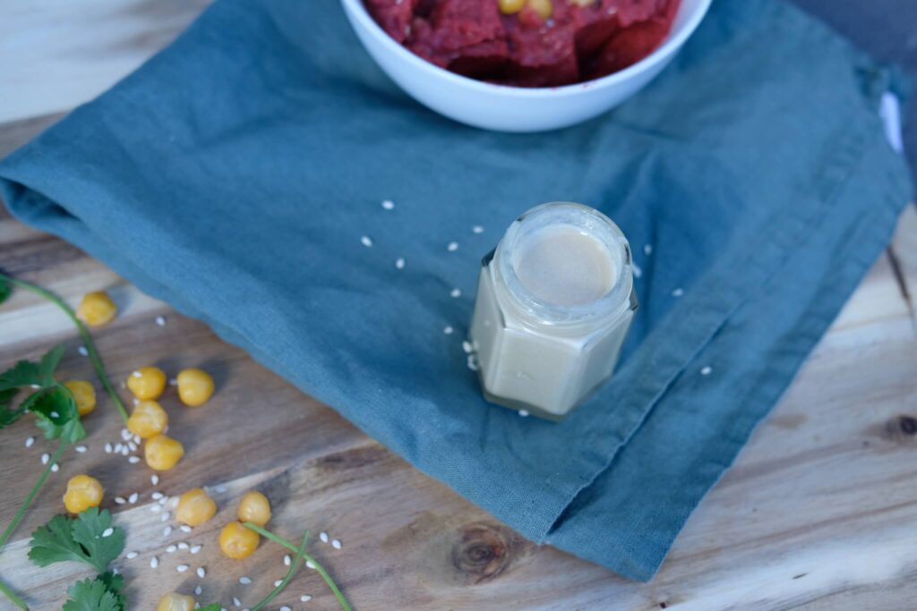 Tahini er noe så enkelt som en sesampasta. Den består av sesamfrø og et par ss olje. Dette får man kjøpt på helsekost og noen velassorterte dagligvarebutikker, men hvorfor ikke lage selv? Da vet du akkurat hva den inneholder, og det er myyye billigere. Tahini brukes i hummus, men også i marinader og sauser. Holdbarheten på hjemmelaget tahini er et par uker, opp mot en måned har jeg hørt.
