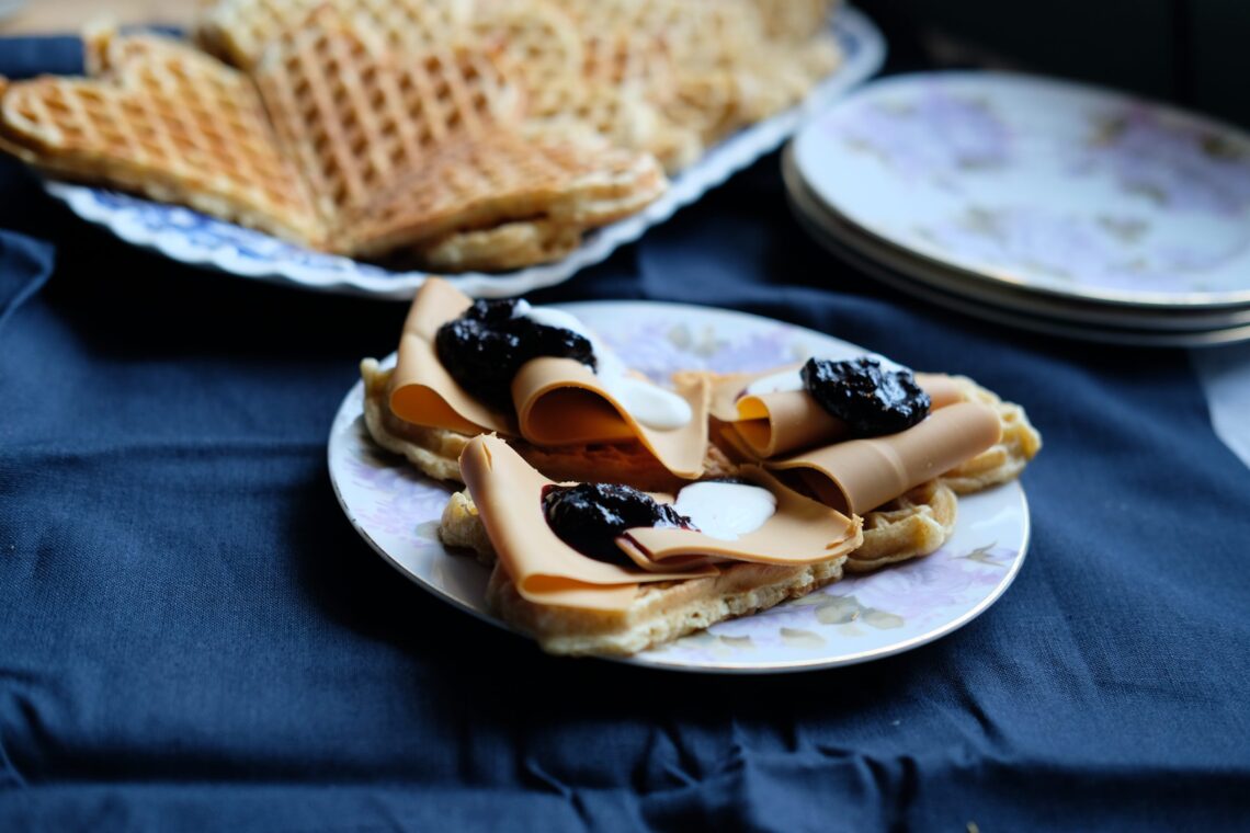 Stek og server lune, gjerne med brunost, blåbærsyltetøy og rømme.