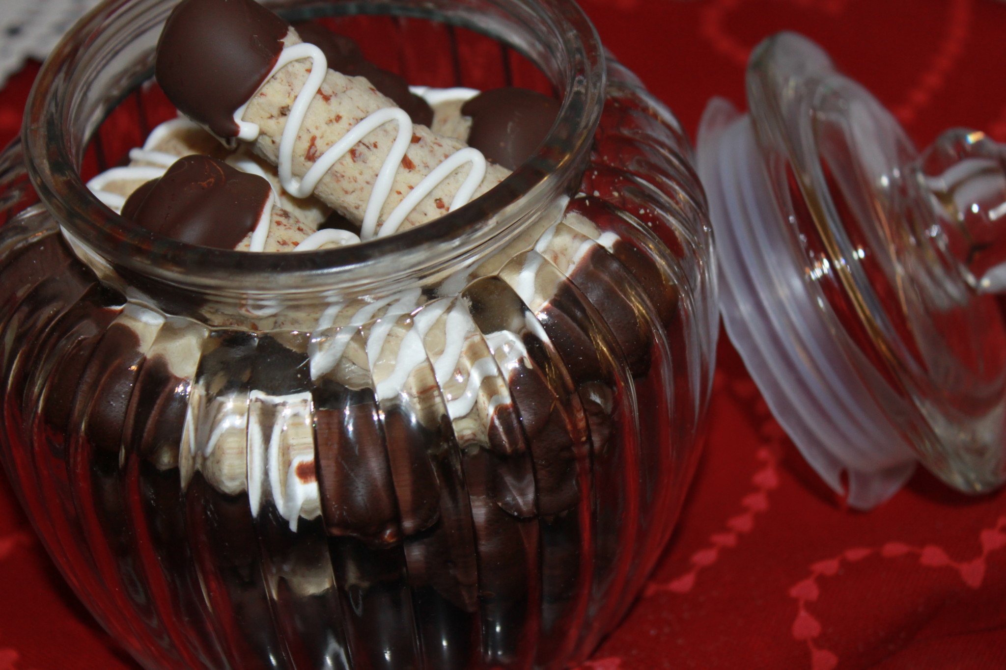 Til slutt sprinkles litt hvir sjokolade over. Oppbevar i tett boks i kjøleskap eller fryser. Server gjerne med hjemmelaget is. Lykke til!