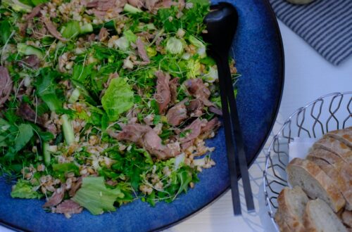 Pannestekt skrei med potetmos, bacon og ovnsbakte grønnsaker