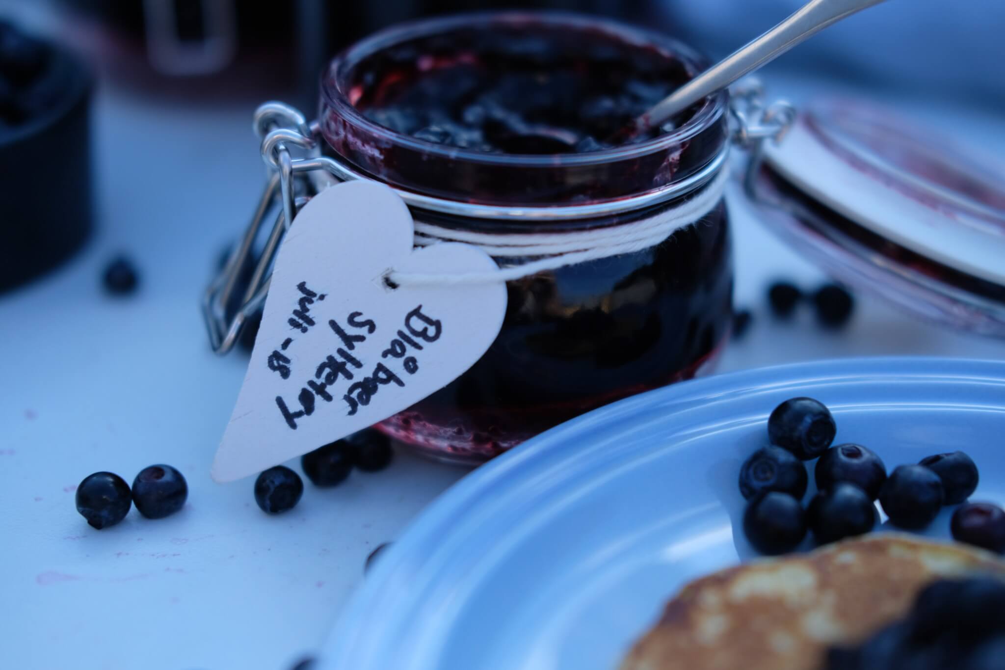 Server resten av vaniljekremen ved siden av bollekaka.