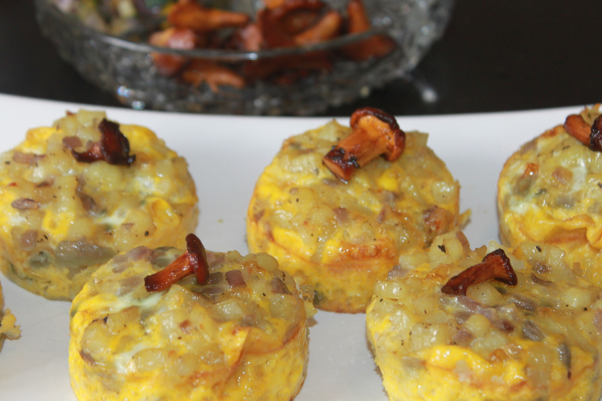 Ha i grønnsaker og ost, bland alt sammen og ha i store muffinsformer.