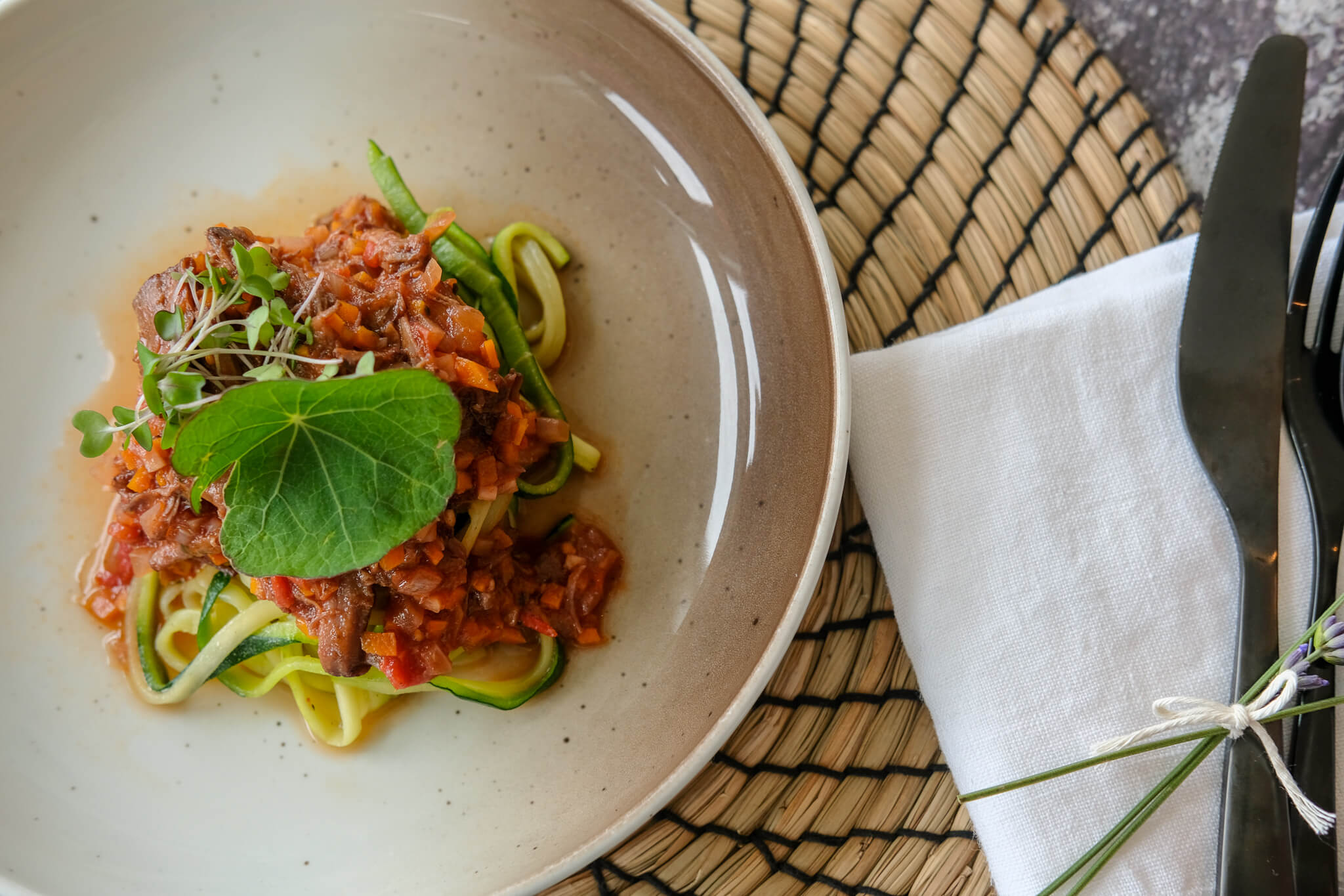 Raguen har jeg servert med squashpasta, oppskrift her.