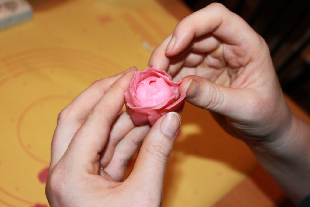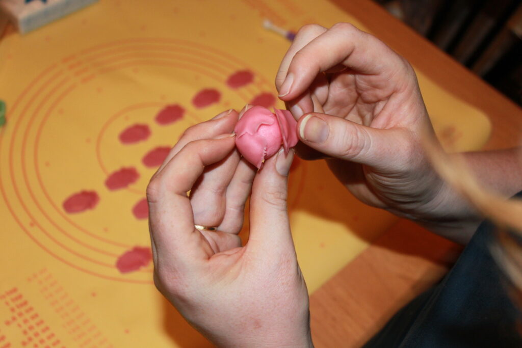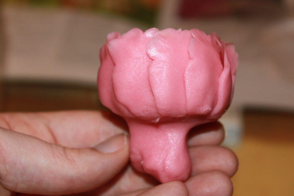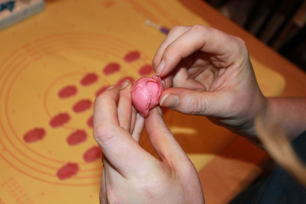 Form kronbladene forsiktig og skjær bort den overflødige marsipanen i bunn.