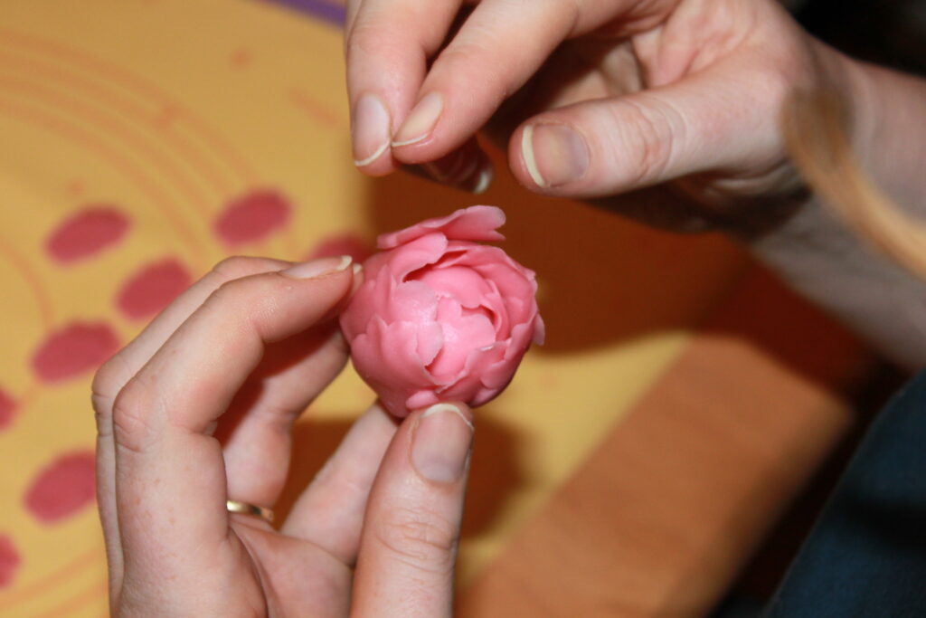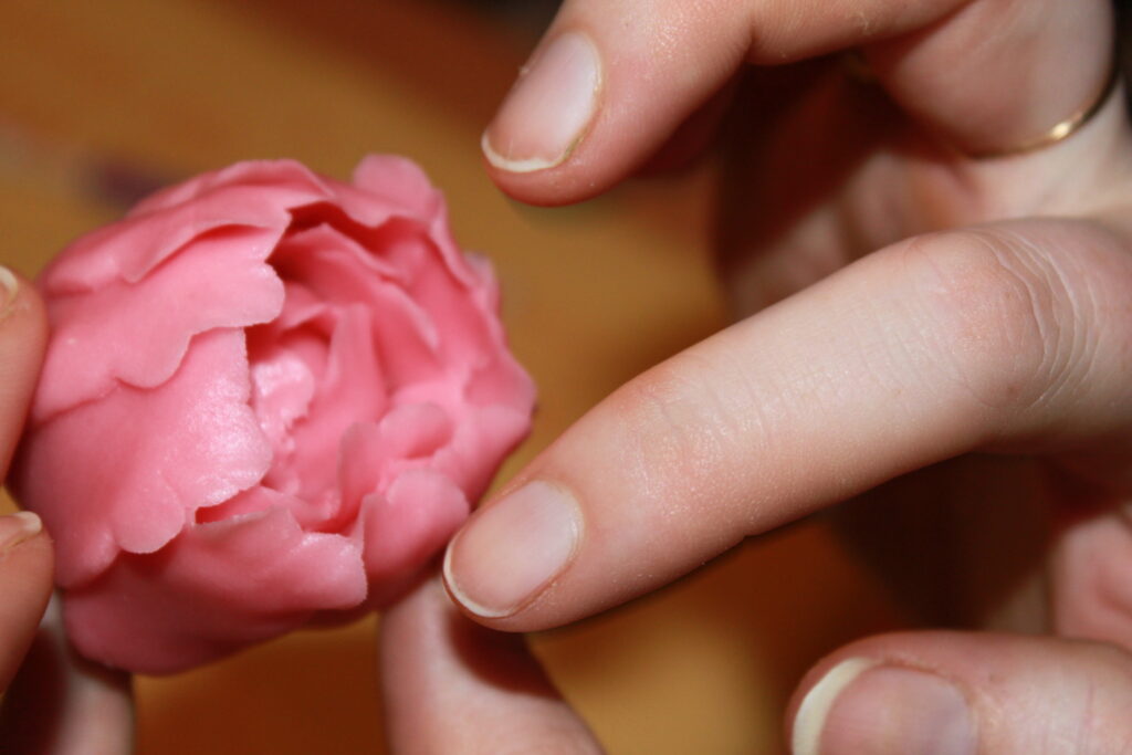 Jeg synes det er utrolig gøy å lage blomster av marsipan eller fondant. Her har jeg laget peoner med en veldig enkel teknikk. Vil du lære det?