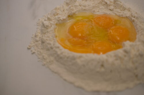 Hold igjen litt av det siste egget for å justere konsistensen på røra, kanskje du trenger mindre, eller kanskje du trenger mer enn tre egg.