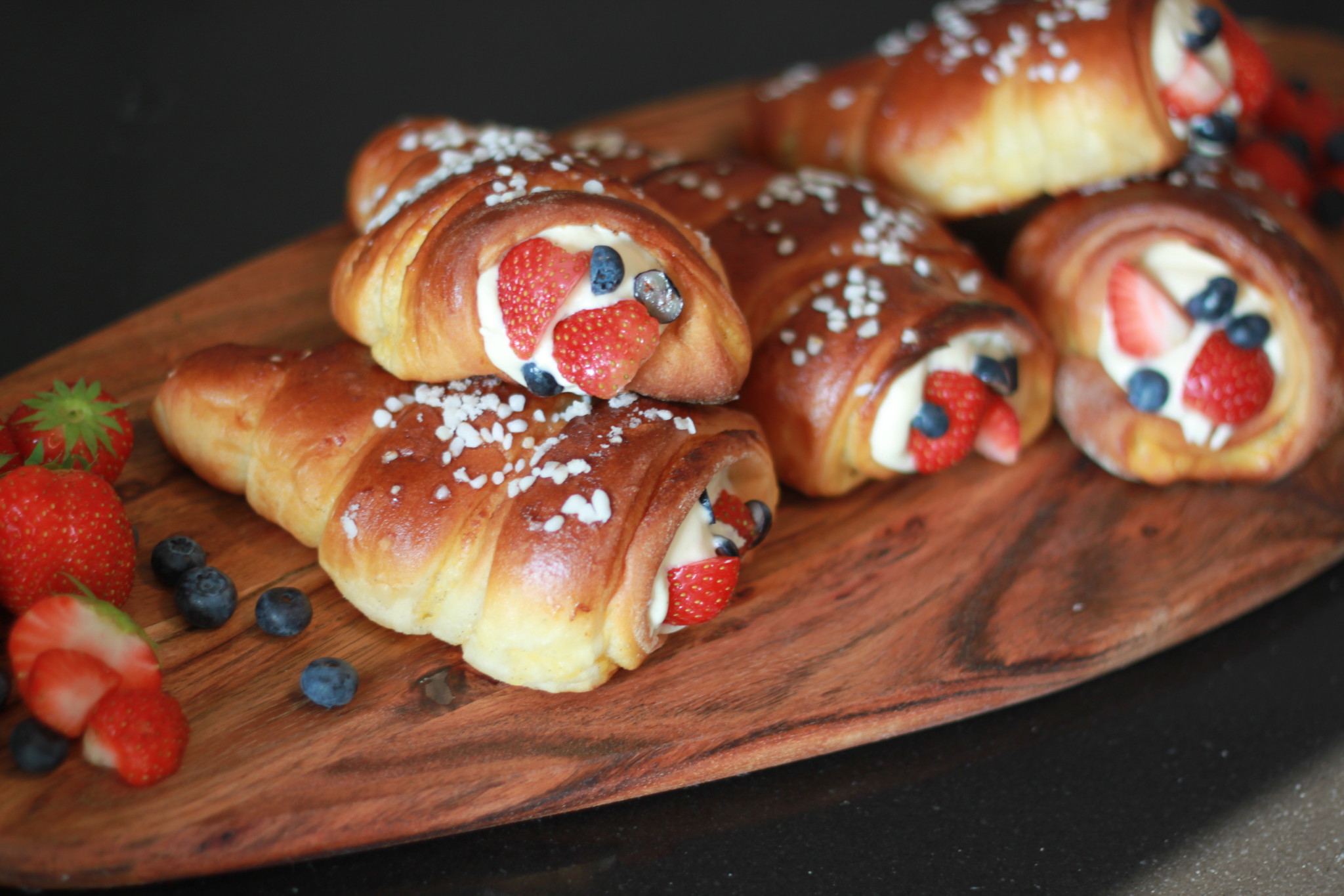 Det er garantert flere enn meg som liker å prøve ut nye varianter av boller. Her har jeg laget kremmerhus. I deigen hadde jeg frøene fra en vaniljestang, så brettet jeg inn vaniljekrem etterpå. De kan fylles med det du måtte ønske, makronfyll, eplekompott, tyttebærkrem eller vaniljekrem og bær for å nevne noe.