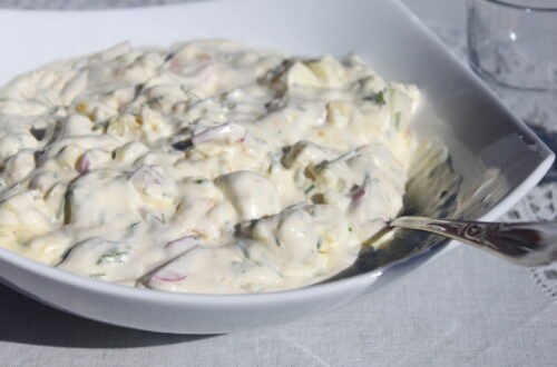 Pannestekt skrei med potetmos, bacon og ovnsbakte grønnsaker