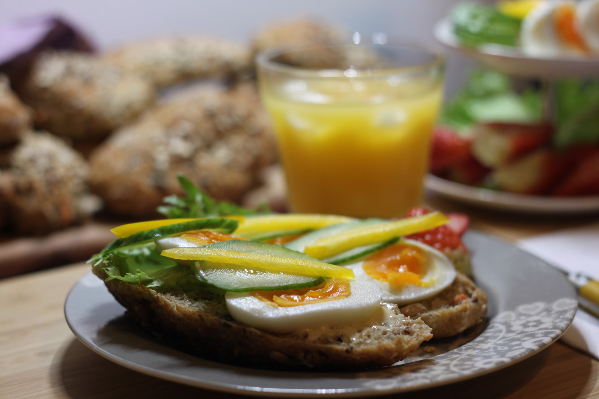 Dekk bordet og server nydelig nybakt brioche men en kopp sterk kaffe og jordbærsmoothie.