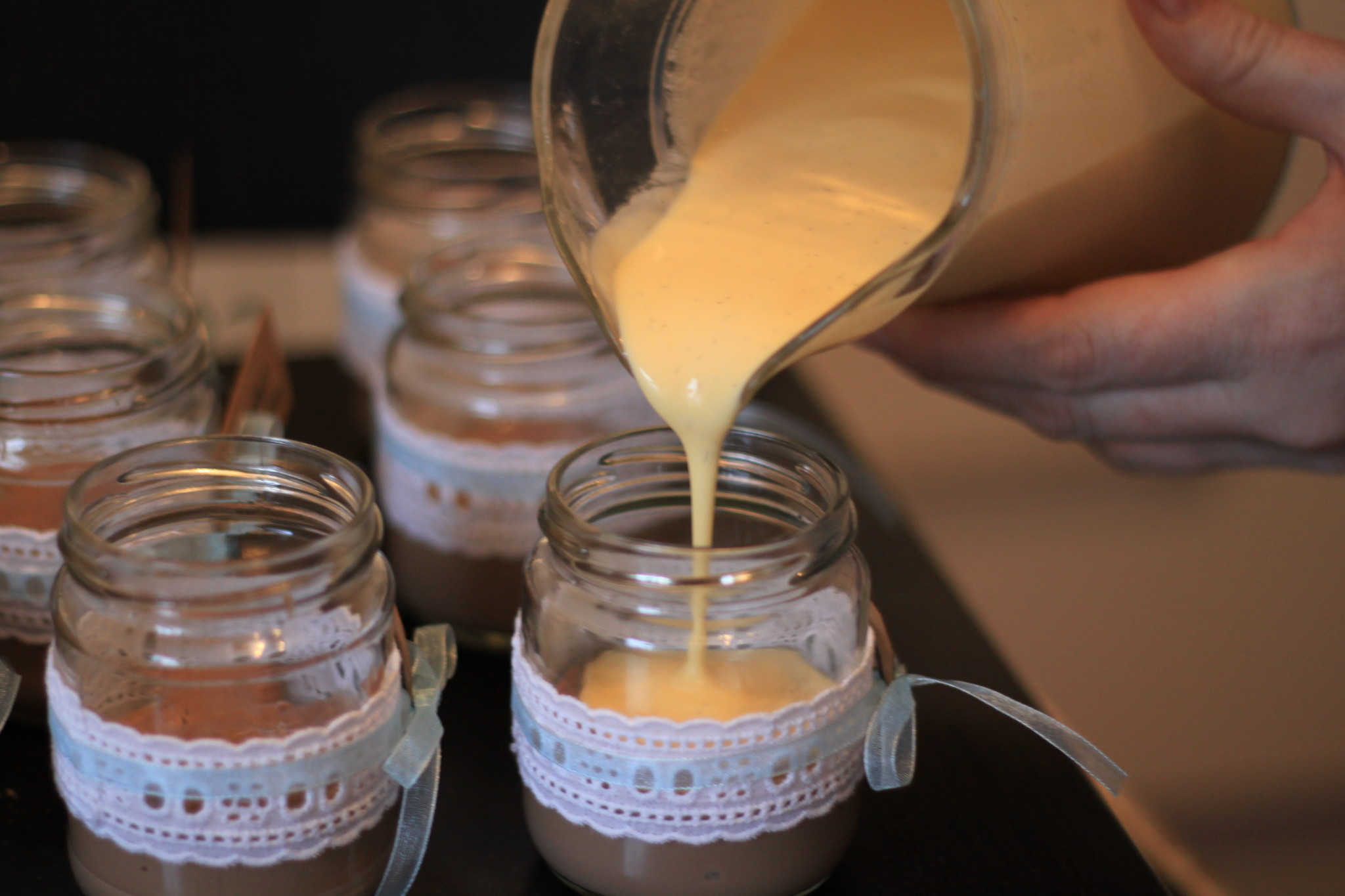 Pisk egg og sukker til eggedosis, tilsett vaniljesaus.
